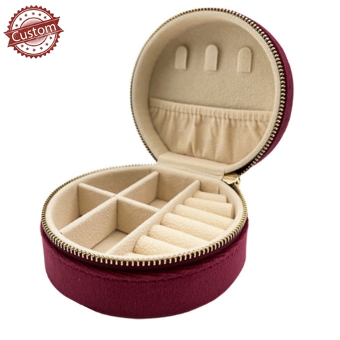 Venta al por mayor portátil collar anillo pendiente organizador Mini regalo joyería caja de almacenamiento Uso de terciopelo con cremallera