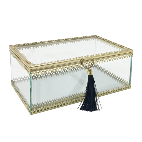 Venta al por mayor personalizado collar anillo pendiente organizador organización Mesa metal cristal joyería cajas de almacenamiento con cuerda