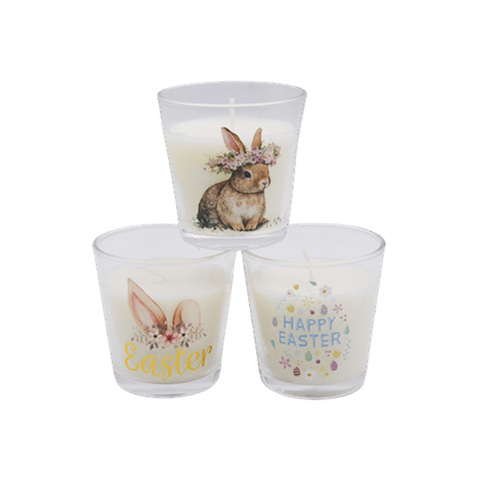 Venta al por mayor personalizada cera de soja vela perfumada al por mayor hogar regalo de Pascua conejo con taza de vidrio
