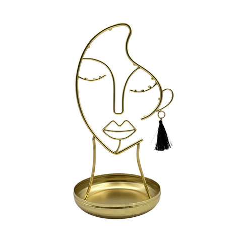 Soporte de joyería de metal dorado personalizado al por mayor Forma de cara multifuncional para el hogar, dormitorio