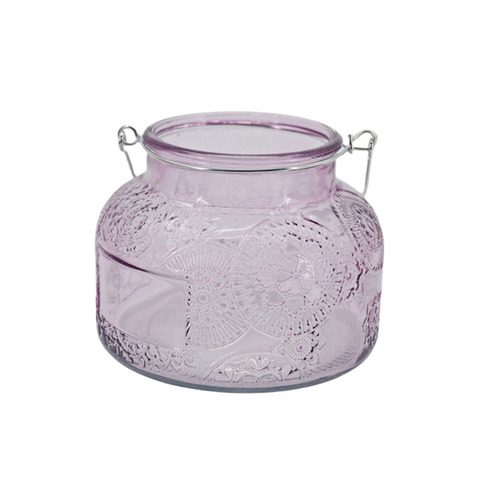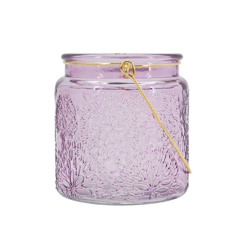 แก้วสีม่วงสีสันสดใสทันสมัยโหลเทียนใสสำหรับจัดเก็บของตกแต่งบ้านสำหรับห้องครัวสำนักงาน